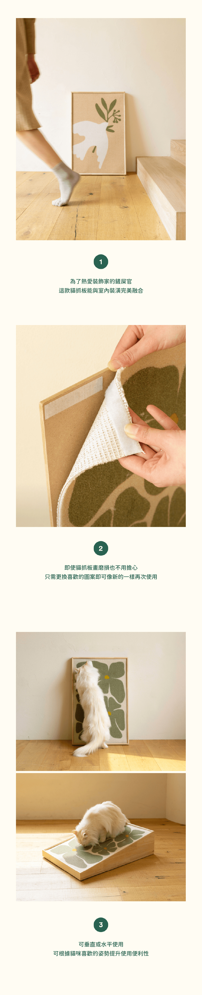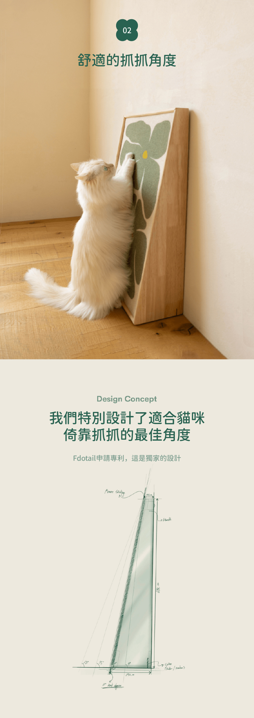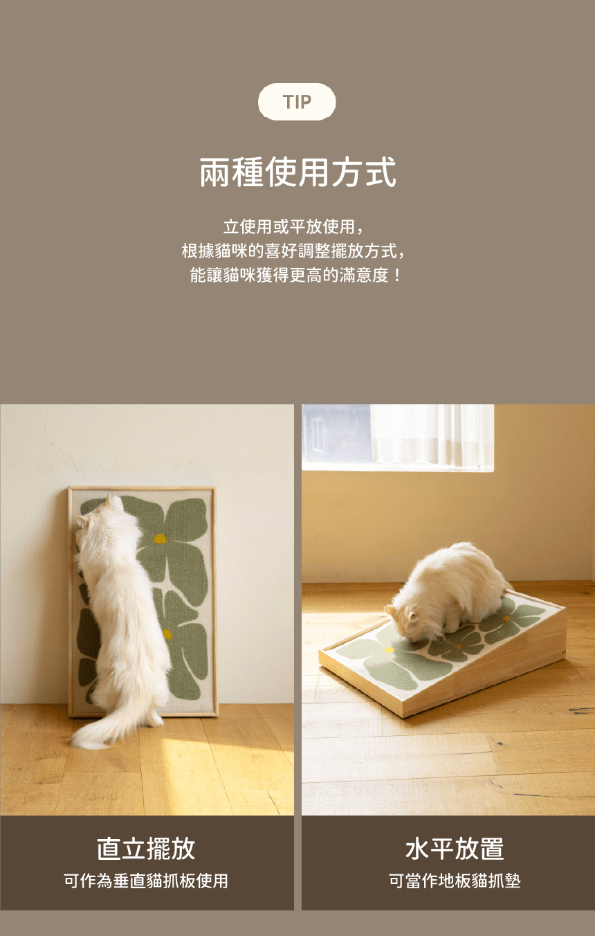 ✔️ 符合貓咪需求的設計——斜角設計,滿足抓抓的慾望、再也不抓沙發 🐾