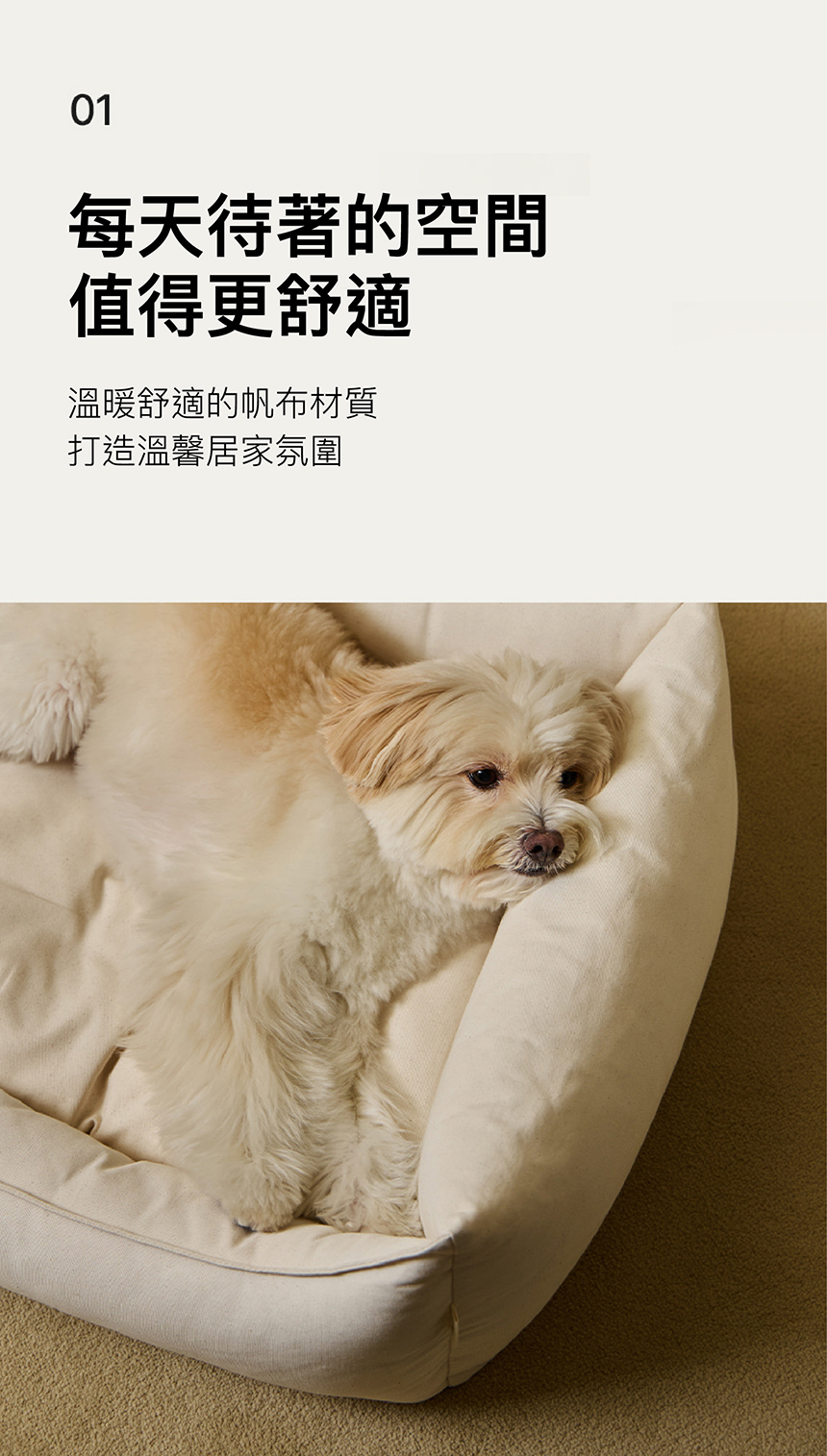 簡約美學,融入居家風格。可拆洗設計,清潔便利,讓毛孩一年四季都能享受舒適睡眠。